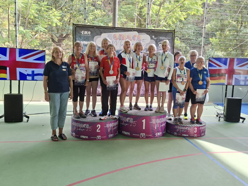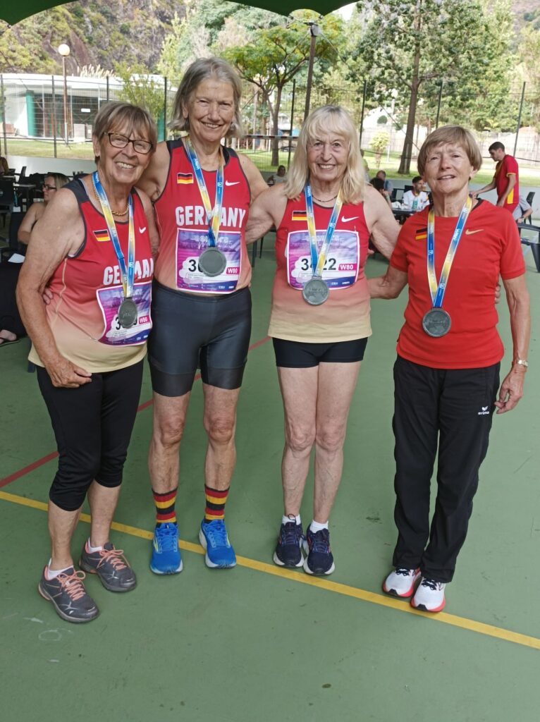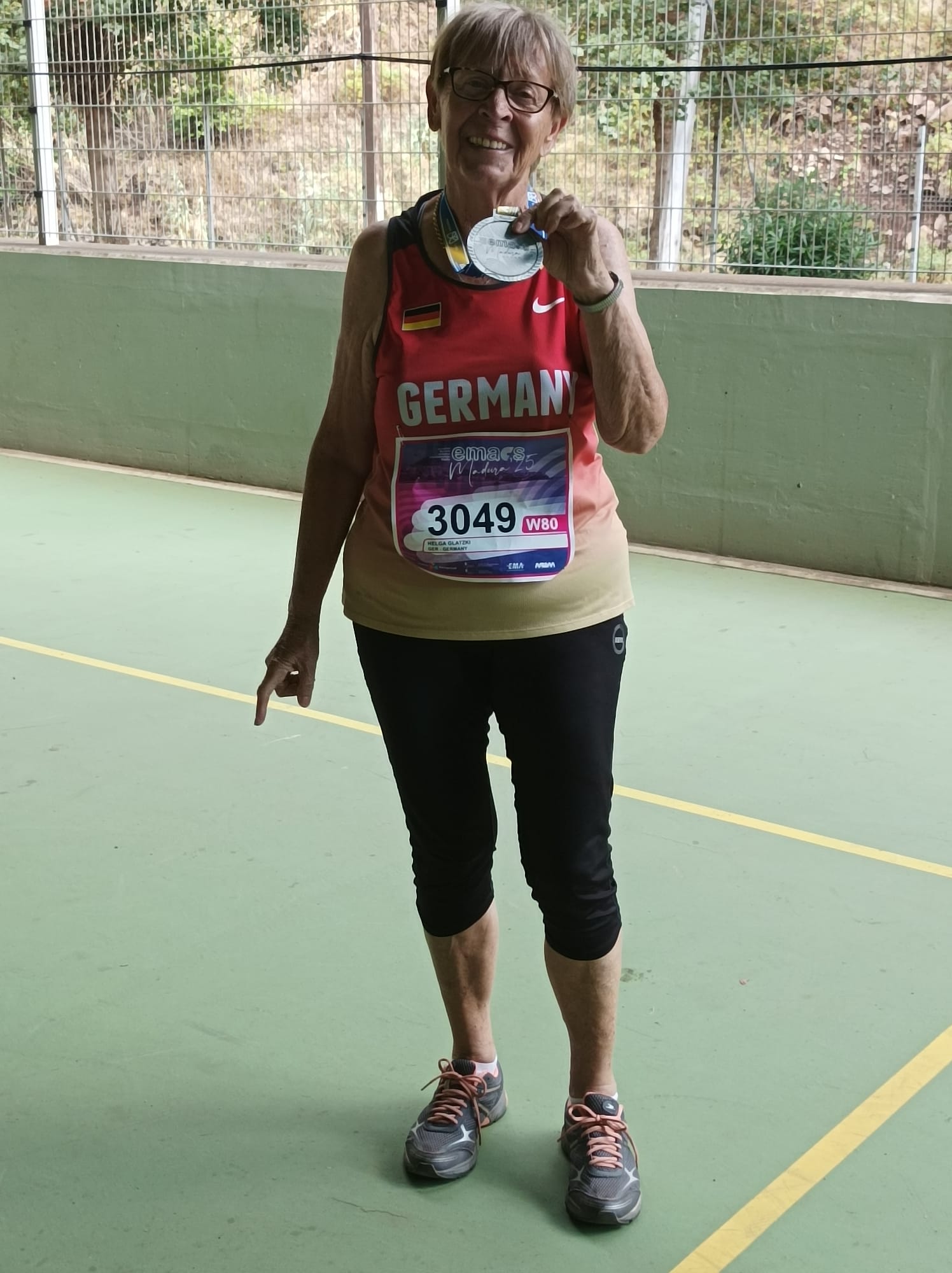 Unsere Helga hat tolle Leistung auf internationalem Boden gezeigt. Bei der EM dieses Jahr startete Sie über 100m und 200m, beide Male reichte es leider nur für den 4. Platz.. Durch ihre guten Zeiten, wurde sie aber in die 4x 100m Staffel geholt und dort wurde sie endlich belohnt. Nun kehrt sie mit einer Silber Medaille zurück nach Hause! Obwohl sie gegen jüngere Teilnehmer laufen musste, hat sie es geschafft, als Schlussläuferin die zuvor noch zweit platzierten Finnländerinnen einzuholen.